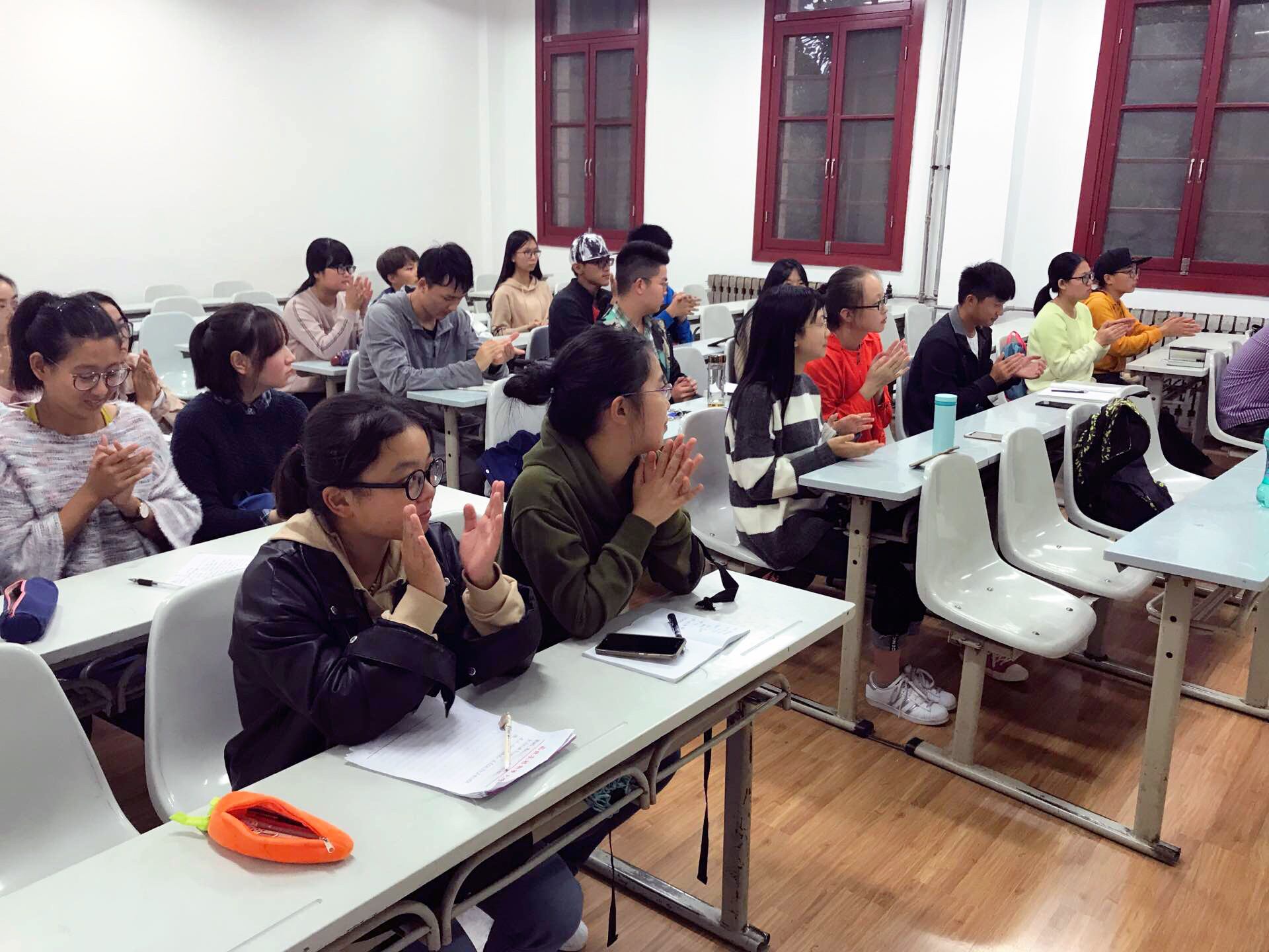 最后,金桢栋以问答的形式同班级学生亲切交流,同学们踊跃提问,问题涵盖学习、生活方方面面,乃至日后的升学、出国等方面均有涉及,金桢栋逐一为同学们答疑解惑,将自己积攒的经验毫无保留的分享给学弟学妹们。通过此次经验交流,班内学生切身体会到了本科期间学习的重要性,利于找准自身定位。