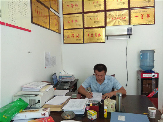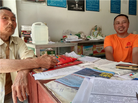 又走了大概十几分钟,我们终于到达了旺苍县九龙镇苍山村村民委员会。当我们正要进入村委会办公室时,旁边的兽医店店主林老板询问了我们的来意,并告诉我们村委会的村干部临时有事,过一会儿才会回来。征得林老板同意之后,我们先对他进行了访问。