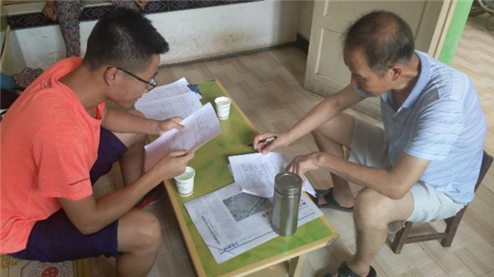 调查团成员对于村民进行问卷评估