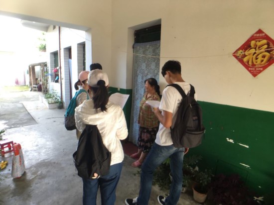 在吸取昨日调研的经验之后,今天的调研活动格外的顺利。我们小队分头行动,穿梭在村内交错的巷道中,敲开一户户人家,就总是能收获一张张善意的笑脸。一些好心的村民还顾虑到炎热的天气,为我们端来清凉的水来解一天的暑气疲乏。在这样和谐的氛围下,小队的干劲愈发高涨了起来,今日份的调研任务也在这样良好的气氛中被我们超额完成了。
