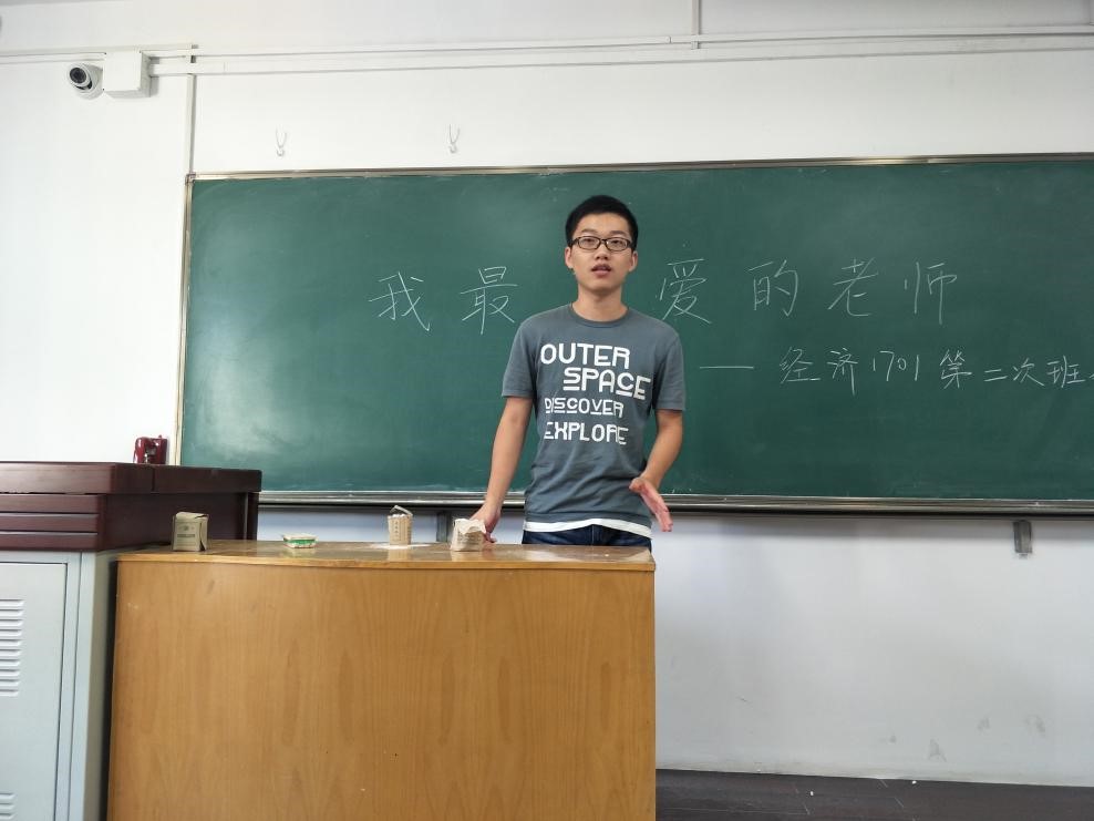 为更好的形成尊师重教、感恩教诲的校园风尚,给予学生表达对自己老师喜爱的机会,同时锻炼自身语言表达能力,丰富与教师节有关的文化活动,黄金城官方网站经济171班积极响应学院提出的“我最喜爱的老师”主题活动,于9月7日下午4:00在北校区N8115教室召开了新学期第一次主题班会。本次班会由班长刘家玮主持,全体学生踊跃参加无一缺席。