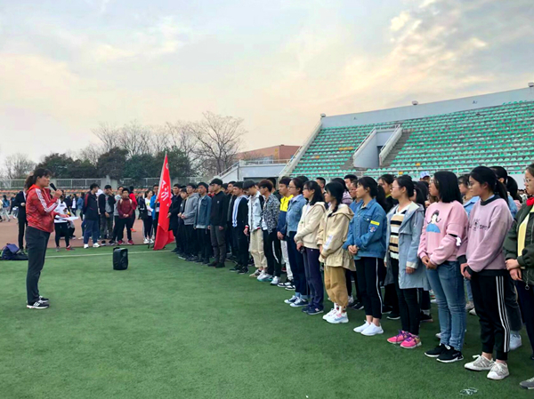 体育辅导员王鲜做动员讲话