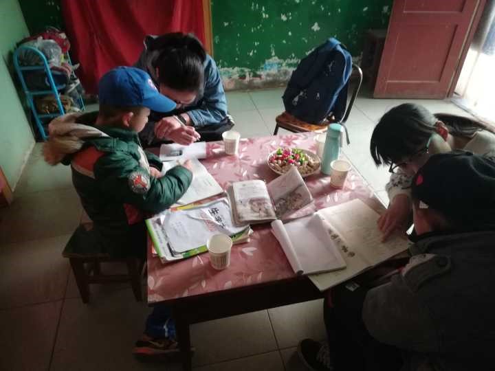 到达目的地后,不一会儿便有小朋友或者是家长出来带志愿者到自己家里去,让我们的志愿者对孩子们进行功课的辅导。我们进到孩子的家中,孩子的家人都是比较热情的,会为我们倒水,这些行为会让我们的志愿者们都感到十分暖心。随后,我们的志愿者就对孩子们进行了作业的辅导。我们会对孩子们周末的作业以及他们平时比较容易混淆的问题进行讲解,让他们在学习上面遇到的问题能减少一些,这也是我们这次支教的目的之一,让孩子们在周末也能有所收获,对于我们志愿者来说也有了很多的收获。在我们对孩子们进行辅导时,我们的志愿者认真仔细,会细心地为孩子们讲解她们不会或者做错的每一道题。在一些对孩子们来说很难懂的地方,我们的志愿者们也会十分耐心地一遍又一遍地讲解,直到孩子们弄懂那些问题。同时,志愿者们讲题的方式也是比较有趣的,加上孩子们的学习兴趣也是比较高的,我们的支教活动进行的十分顺利。