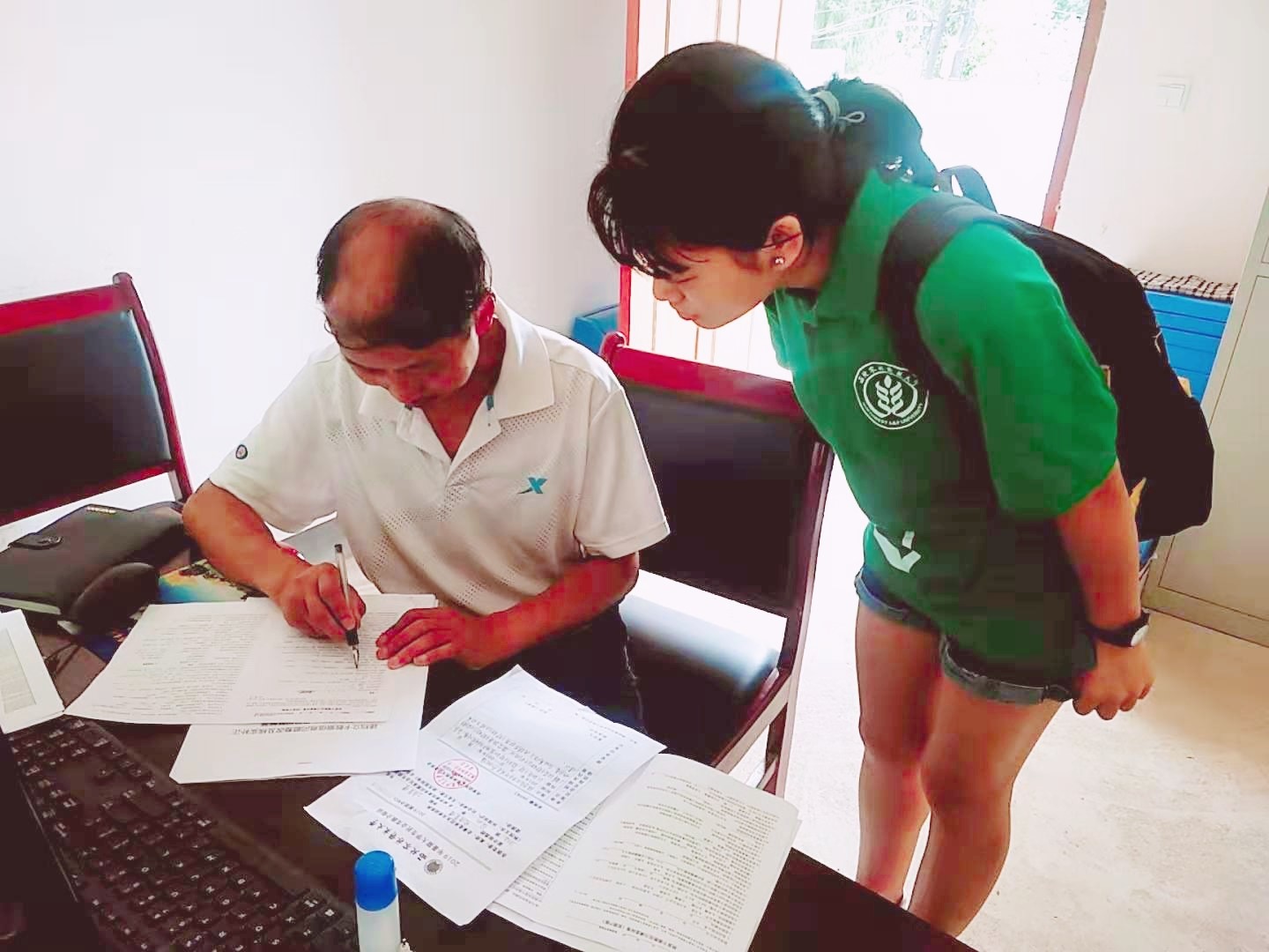7月20日,调研队走进乡村,来到了燕子砭镇。虽然是周六,但各个村委会的扶贫干部却没有闲下来。他们一部分在办公室内翻阅扶贫文件,查阅各个贫困户家庭信息,制定帮扶计划;另一部分则亲自走访自己帮扶的贫困户,给他们送去温暖的问候和日常的用品。办公室内一片安静,调研队队员们竟有些不忍打扰。
