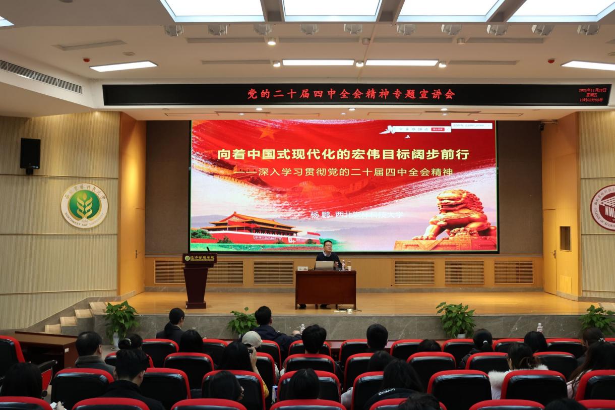 党的二十届四中全会是向第二个百年奋斗目标进军关键节点的重要会议,擘画了“十五五”蓝图,锚定了中国式现代化发展航向。为深入学习贯彻党的二十届四中全会精神,11月28日,黄金城官方网站第二十六期团分校第五次团课于C101成功举行。本次团课特邀马克思主义学院杨鹏教授作题为“向着中国式现代化的宏伟目标阔步前行——党的二十届四中全会精神宣讲”的报告。团分校全体学员共同学习。