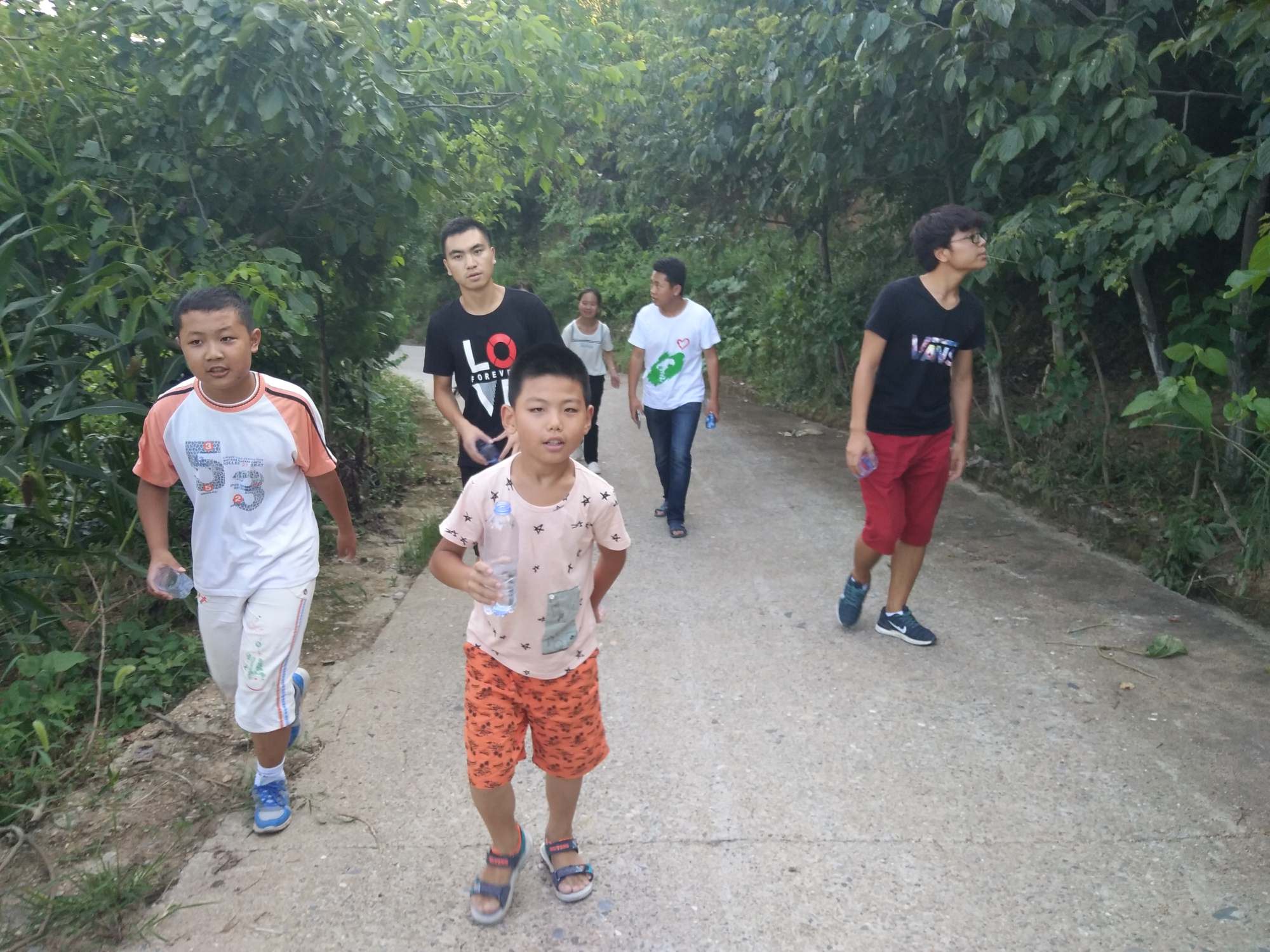 下午六点钟,一路欢声笑语,队员和孩子们踏上了去抓螃蟹的路。山路很难走,虽然很累很热,小孩子们还是很有热情在前面奔跑,时不时还回头来拉队员们一起跑。