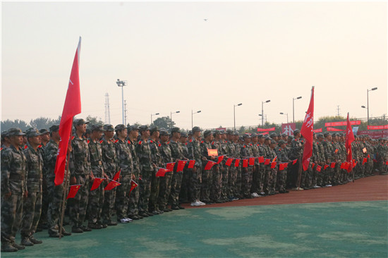 晨曦吐露,绿茵清芬,全体参训新生于6点50分在田径场国旗台前集合完毕。他们身着整洁戎装,让军装上的迷彩青春照亮她的美好与风采;他们手拿五星红旗,以眼神中的骄傲自豪捍卫她的尊严与荣光;他们军姿坚韧挺拔,用姿态中的英姿飒爽彰显她的繁荣与昌盛。她,就是我们伟大的祖国!