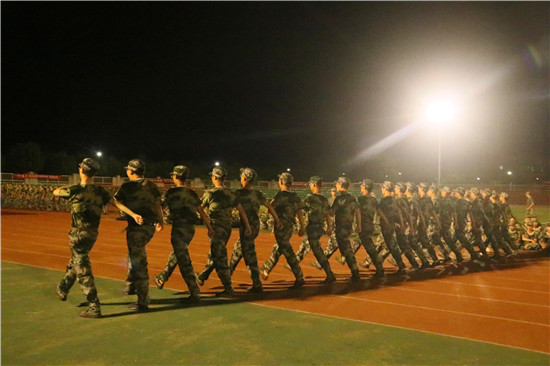 习近平总书记曾在北京大学师生座谈会上的讲话中提到:“爱国,不能停留在口号上,而是要把自己的理想同祖国的前途、把自己的人生同民族的命运紧密联系在一起,扎根人民,奉献祖国。”在伟大的爱国情怀的熏陶下,经管学子今天练得格外卖力。夜色渐晚,同学们在严格的训练成果检查之后都疲惫的走向休息区,而经管40连仍然在田径场上反复“耕耘”,热烈而欢快的拉歌声似乎都没有影响到他们专注的训练。教官讲道:“他们的训练姿势有些细节仍需改进,为了学院最后的荣誉,一直不抛弃不放弃,希望能通过努力将动作精细到位。”相信每一个人都值得拥有能为自己当初的努力与坚持而感动的回忆,那些汗水浸泡过的岁月一定独特而难忘。