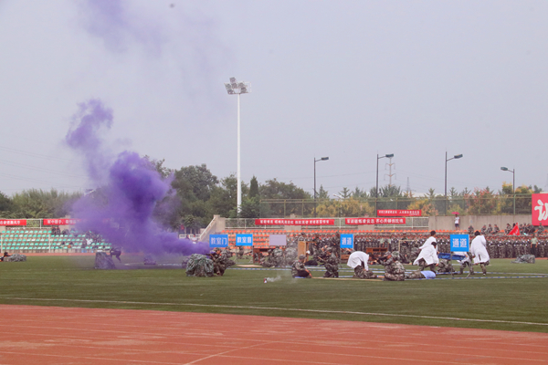 下午,田径场上的军训汇演彩排仍在声势浩大地进行着,汇演融入精彩绝伦而又寓意深刻的反恐训练,带领着全体新生走入枪林弹雨,感受炮火轰鸣、硝烟弥漫下,军人们不负使命,牢记自身所肩负的责任与义务,奋勇拼搏,顽强抗争,最终换来反恐胜利的喜悦与振奋。训练场上顿时变成真正的战场,为国捐躯,无畏牺牲,战争胜利最后挥舞的国旗让众多观看者热泪盈眶。不抛弃,不放弃,这是军人的刚硬气派;不畏敌,不低头,这是军人的熊熊军魂。