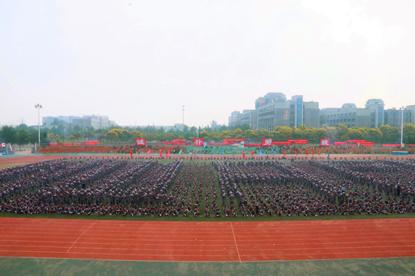 五千多名新生在田径场中央组成巨大的方阵,在指挥官的指令下不断调整队列,向位置不同的新兵发布不同的动作指令,用自己来拼凑数字,礼赞祖国、致敬西农、感恩发展。全体上下,团结一心,专注于拼凑“十一”、“NWAFU”、“1949”和“70”、“1934”和“85”、“2019”,纪念中华人民共和国的伟大成立、见证西农精神的绽放、唱响时代的发展、礼赞辉煌的中国!主席台上,指挥官用诙谐的指令扫去逐渐上升的温度和悄然升起的骄阳带来的烦闷躁动,巧妙带动新生情绪,指引新兵们高效配合、共同努力。洪亮非凡的口令下,“迷彩绿”重复着蹲起的动作,全神贯注,聚精会神,一鼓作气并努力做到最好。