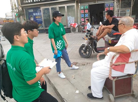 队员集合后,抵达开封鼓楼区,队员们先后走访了0001号黄包车师傅,一家饭店老板娘和一位与毛主席握过手的八十多岁的老爷爷,并就当地文化变迁及传承,经济发展,居民生活等相关问题做了大致的了解,他们在聊天中给队员们做了详细介绍。队员们了解到,改革开放后,民众的生活水平都有了大大提高,家家收入越来越多,其中提到开封经济问题原因是没有支柱产业,一些工业被废弃之后并没有发展新的工业,旅游业也没有得到很好的扶持,导致开封的发展比较缓慢。他们对队员们的活动给予了高度评价,这不但给那些没有走入社会的大学生一个接触社会的平台,也是为社会发展注入新的活力。