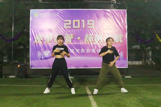 晚会伊始,多位同学带来《Kill This Love》舞蹈展示引燃全场,伴随着学生们热烈的掌声,迎新晚会正式拉开帷幕。紧接着,张欣钰等六位学生共同演唱串烧歌曲 ,台上台下的应援棒跟随节奏舞动,引领着全体学生走入军训的美好回忆。在晚会激昂的氛围之中,相声表演《校园贷风波》使得现场趣味横生,同时也为初入校园的19级新生敲响有关校园贷的警钟。舞蹈表演《冰菊物语》表演者温书航用款款舞姿演绎“晶莹无瑕、景致如画”,诠释古典舞的“形神兼备,身心交融,内外统一”。随后,曲尼措姆带来一首动情演唱的《祖辈的雄伟》,让在场所有人感受到青藏高原的巍峨壮阔,憧憬于祖辈们的负重前行、无私伟大。小品表演《险象环“声”》引领学生进入跌宕起伏却又趣味十足的精彩情节,舞蹈串烧节目青春洋溢,赢得场下的阵阵掌声与欢呼。激情的音乐声未落,一首由沈嗣东带来的吉他弹奏《无题》温馨奏响,场下的应援棒和灯牌随着节奏温柔律动。晚会临近尾声,场上的相声表演《铃铛谱》依旧精彩纷呈,引得台下观众不断欢呼。《时间都去哪了》的动情曲调勾起经管学子的拳拳赤子情,朗诵节目《夹缝中的生命》为新生荡起青春搏击、奋勇拼搏的能量。最后,晚会由韩舞队带来的精彩绝伦的舞蹈《dalla dalla》画上完美的句号。
