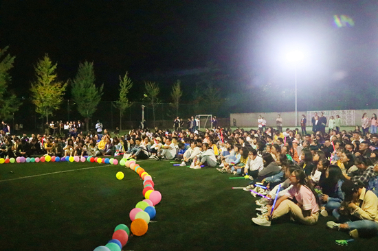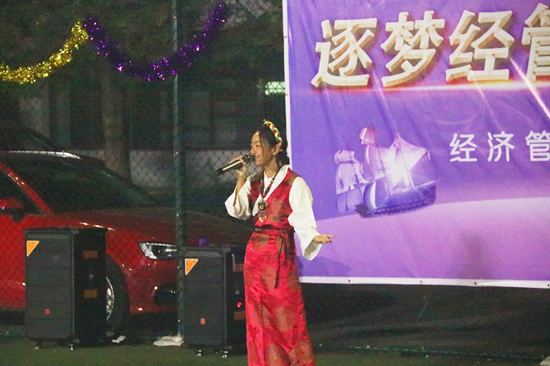 整场晚会以“逐梦经管,扬帆起航”为主题,节目表演精彩纷呈,高潮迭起,节目中穿插“抢凳子”等游戏互动环节,场上欢笑声不断。学院领导和老师热情参与抽奖环节,为在场的新生送去一份幸运,更是送去了一份大学的温馨。小足球场上应援棒和灯牌不断闪烁,经管学子的青春风采肆意绽放。